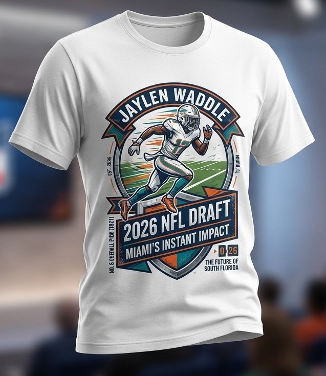 The 2026 NFL Draft is buzzing, and while Jaylen Waddle is a seasoned pro, his influence on the incoming class of speedsters is undeniable. As fans gather in the streets of Green Bay for the draft festivities, wearing a tribute to the “Waddle Walk” has become the ultimate style statement. This shirt connects the explosive energy of the Miami Dolphins star with the high-stakes drama of the 2026 picks. Whether you’re tailgating or watching the clock wind down on a first-round selection, this design captures that pure, unadulterated gridiron hype.