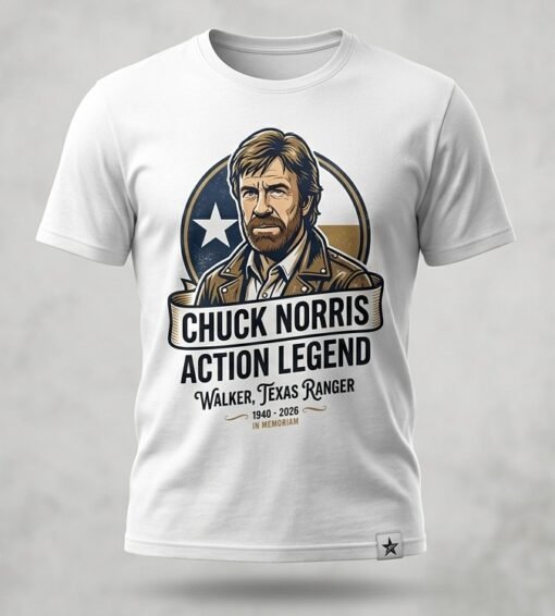 The world was rocked on March 19, 2026, when news broke that Carlos Ray “Chuck” Norris, the “Walker, Texas Ranger” icon, passed away at 86 in Kauai. Just days after his birthday where he famously joked, “I don’t age, I level up” the martial arts grandmaster left behind a legacy that defines American toughness. From his epic 1972 showdown with Bruce Lee to his status as a “Chuck Norris Facts” internet deity, he was a symbol of strength. This commemorative t-shirt bridges that history, turning a moment of global mourning into a celebration of a true patriot and warrior.