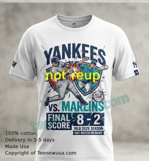 The Bronx was buzzing on April 3, 2026, as the Yankees dominated the Marlins in an 8-2 blowout. The highlights were everywhere: Aaron Judge electrified the 48,788 fans with a massive two-run homer in the first, and Ben Rice kept the momentum going with a three-RBI performance, including a solo shot in the seventh. From Will Warren’s solid start to the relentless pressure from the Yankee bats, every moment of this victory is captured in the spirit of this commemorative t-shirt. It’s more than just fabric; it’s a wearable memory of a dominant home-opening win.